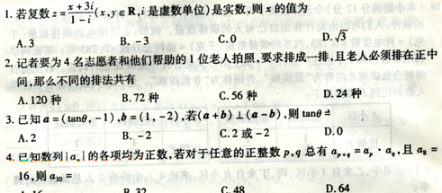 山东省潍坊市2010年高考适应性训练A(数学理)扫描版