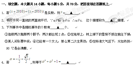 江苏省东台中学09-10学年高二下学期期中考试(数学)