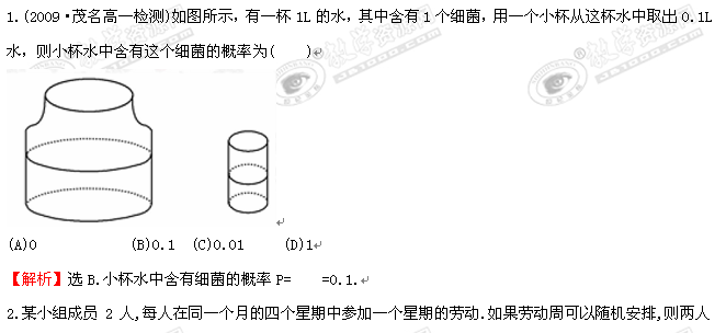 [精练精析]3.4 概率的应用(人教B版必修3)