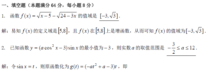 2010年全国高中数学联赛一试试题参考答案与评分标准