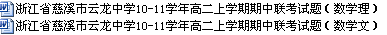 [打包下载]浙江省慈溪市云龙中学10-11学年高二上学期期中联考试题(数学文理卷)