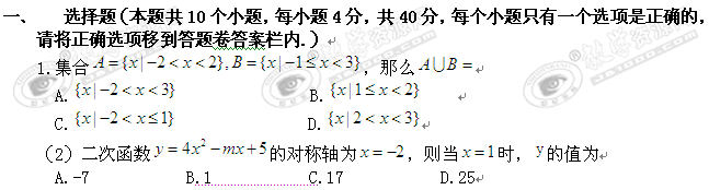 河南省焦作市修武一中10-11学年高一上学期期中考试(数学)