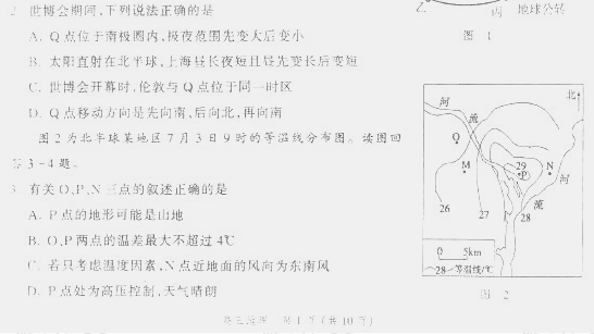 江苏省吴江市汾湖中学2011届高三上学期期中考试(地理)扫描版