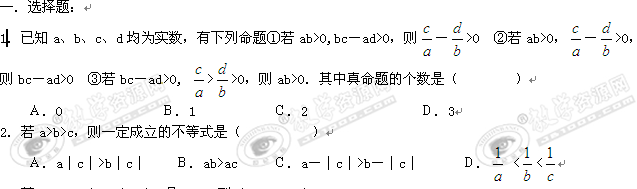 数学:3.1.2《不等式的性质》测试题(新人教B版必修5)