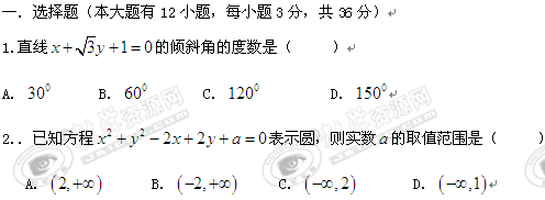 浙江省海宁一中10-11学年高二上学期第二次阶段性测试题(数学理)缺答案