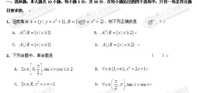 浙江省杭州二中2011届高三10月月考试题(数学文)