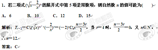 2011届高考数学一轮复习随堂演练:10.3二项式定理
