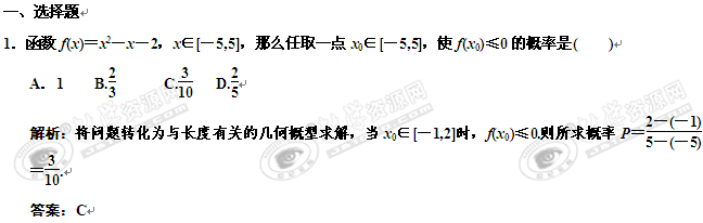 2011届高考数学一轮复习随堂演练:10.6几何概型