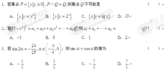广东省高州长坡中学2011届高三12月月考(数学理)