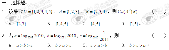 吉林省吉林一中10-11学年高一上学期期末考试(数学)