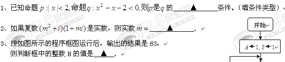 江苏省郑集高级中学2011届高三上学期期末考试模拟试卷(数学)
