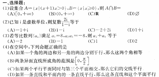 四川省成都市2011届高三上学期第一次诊断考试(数学理)扫描版