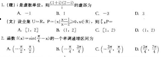 河北省保定市2011届高三上学期期末调研考试(数学文理)扫描版