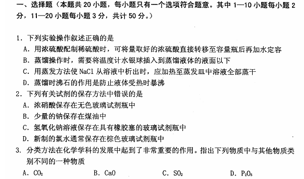 辽宁省沈阳市10-11学年高一上学期教学质量监测(化学)扫描版