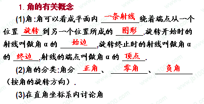 2011年高考数学一轮精品复习课件:第3章《三角函数》——任意角和弧度制