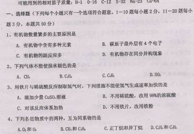 四川省雅安中学10-11学年高二上学期期末考试(化学)扫描版