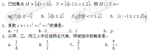 广东省肇庆市2011届高三上学期期末考试(数学文)