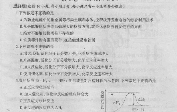 江西省吉安市10-11学年高二上学期期末考试(化学)扫描版