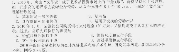 河北省唐山市10-11学年高一上学期期末考试试题(政治)扫描版