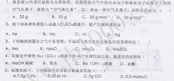 山东省临沂市莒南县等几县10-11学年高一上学期联考期末考试(化学)扫描版