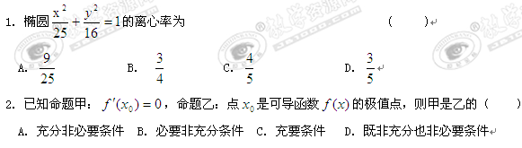 广东省湛江一中10-11学年高二上学期期末考试(数学文)