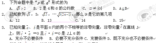 广东省汕头市金山中学10-11学年高二上学期期末考试试题(数学理)