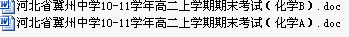河北省冀州中学10-11学年高二上学期期末考试(化学A、B)