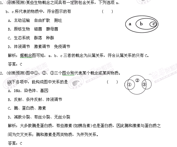 2011届高考生物二轮考点突破复习第二部分专题一 第一讲 概念模型与物理模型类