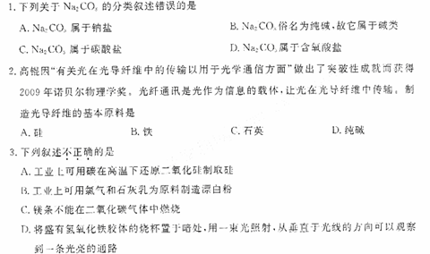 浙江省金华十校10-11学年高一上学期期末考试(化学)(扫描版)
