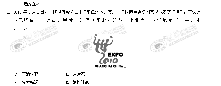 2011届高考政治二轮复习专题过关演练专题9 民族精神与先进文化 试题