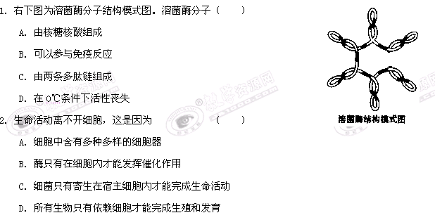 福建省厦门市2011届高三上学期期末质量检查(生物)