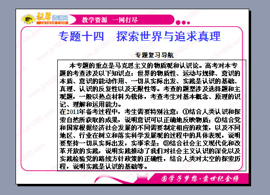 政治:2011年高三二轮复习专题十四 《探索世界与追求真理》课件