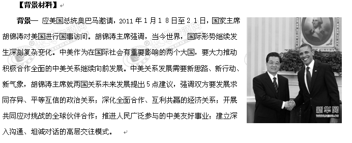 政治:2011高考热点专题《开创中美伙伴合作新局面之旅》试题
