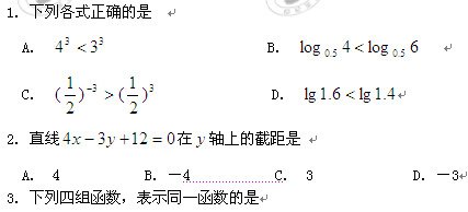 广东省东莞市教育局教研室10-11学年高一上学期教学质量自查试题(数学A)