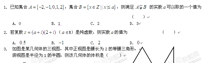 广东省高州市南塘中学2011高三下学期期初考试(数学理)