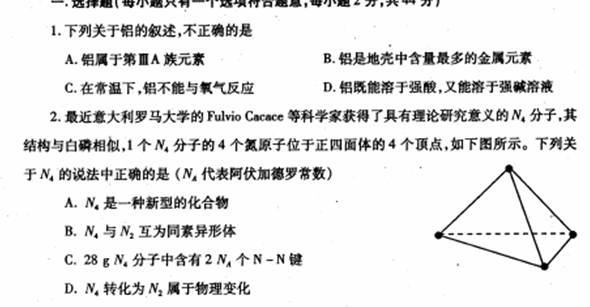 四川省内江市10-11学年高二上学期期末检测(化学)扫描版