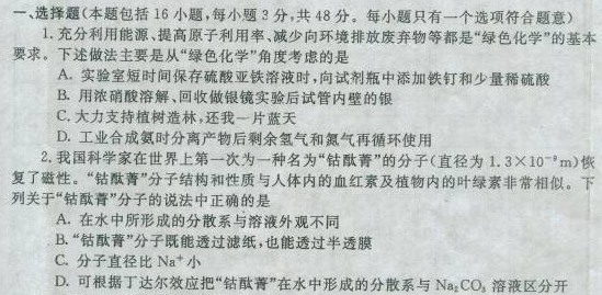 河南省洛阳市2011届高三上学期期终质量评估(化学A)扫描版