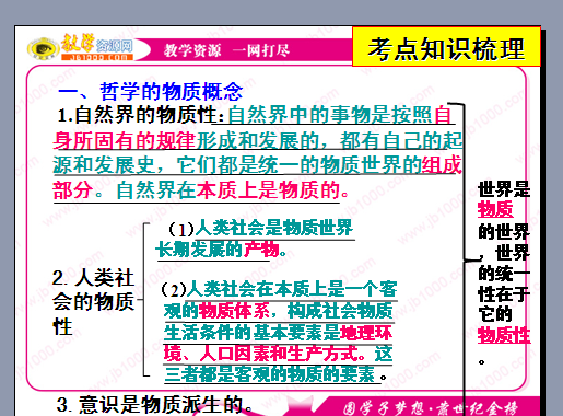 2011年高考复习《探究世界的本质》课件《新人教必修4》