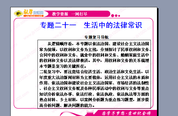 2011年高考政治二轮复习:专题二十一 《生活中的法律常识》课件(新人教选修5)