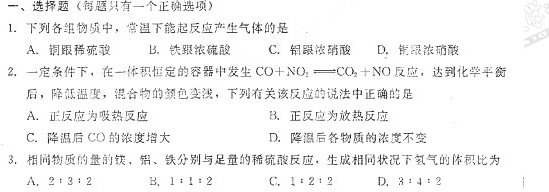 四川省乐山一中10-11学年高二上学期期末教学质量检测(化学)(扫描版)