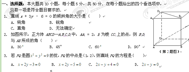 重庆市西南师大附中10-11学年高二上学期期末考试(数学理)