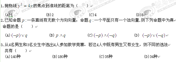 辽宁省瓦房店市高级中学10-11学年度高二上学期期末考试 (数学理)