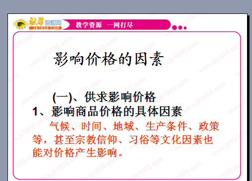 政治:1.2.1《影响价格的因素》课件(新人教必修1)