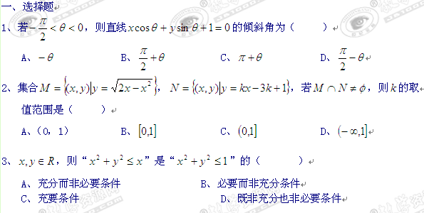 湖北省沙市中学10-11学年高二上学期12月月考(数学文)缺答案