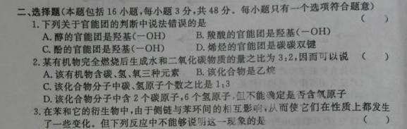 山东省泗水县10—11学年高二下学期期中考试(化学)扫描版