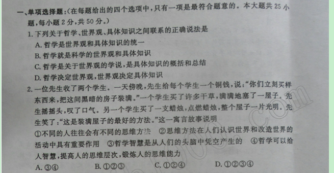 山东省泗水县10—11学年高二下学期期中考试(政治)扫描版