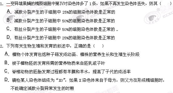 世纪金榜2011年高考生物原创预测题:专题四 生物的生殖、发育和遗传的物质基础(老人教)