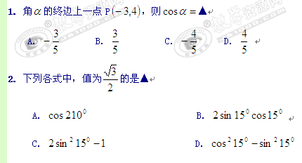 浙江省台州市10-11学年高一下学期六校期中联考(数学)