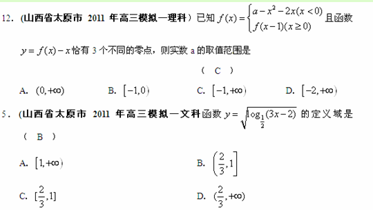 山西省各地市2011年高考最新联考分类汇编(3)函数与导数一