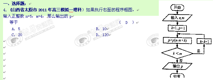 山西省各地市2011年高考最新联考分类汇编(16)算法框图、极限、选修系列